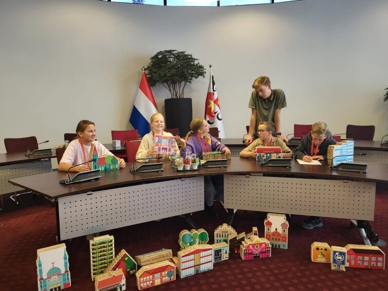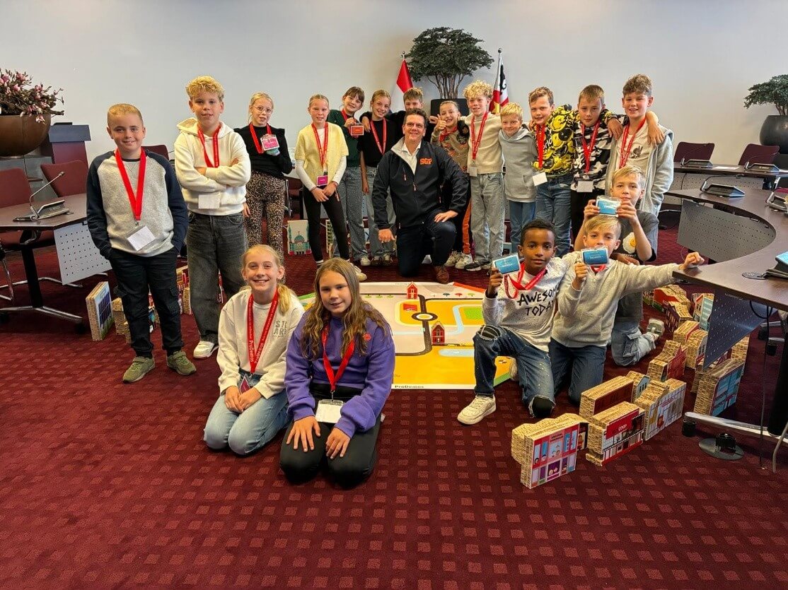 ’s Middags trad groep 8 van de Ebenhaëzerschool aan. Daar werd het spel nóg meer als een politieke arena gespeeld, compleet met partijen als de Leuke Bouwers en de Partij voor Boeren. Hun keuzes waren concreet en praktisch: een brandweer, boerderij, supermarkt en garage mochten niet ontbreken. Ook een basisschool en kerk kregen een plek in hun dorp.